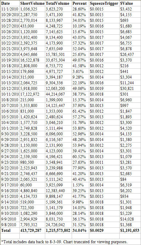 • Approximately 413.7 Million Shares Shorted Since August 2009
