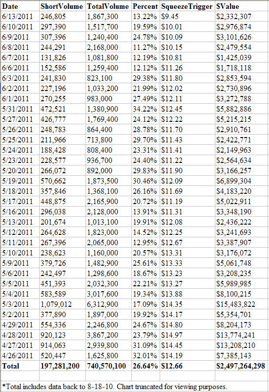 - Approximately 197 Million Total Shares Shorted Since August 2010