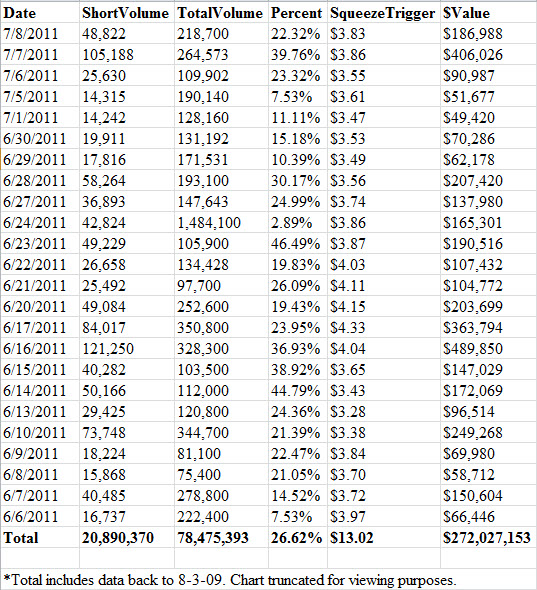 - Approximately 20.89 Million Total Shares Shorted Since August 2009