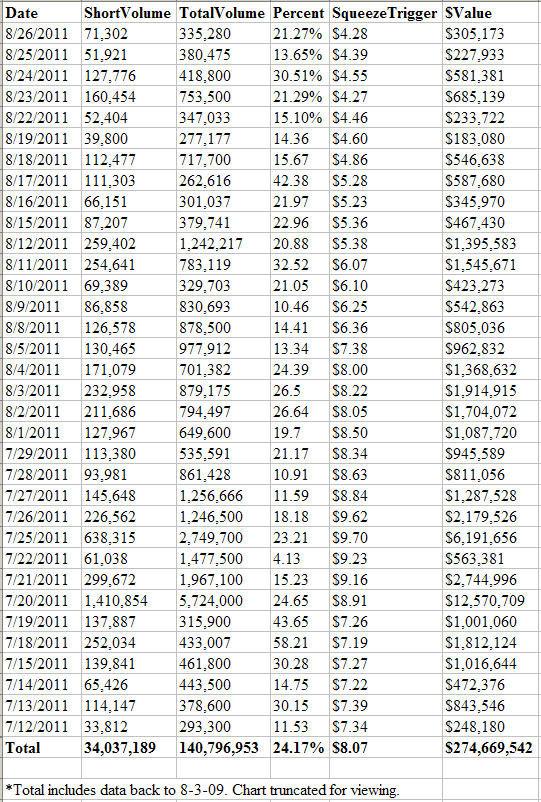 - Approximately 34 Million Total Shares Shorted Since August 2009