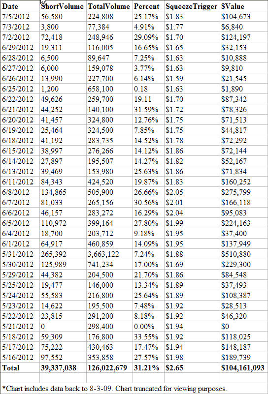 SqueezeTrigger -- 33 billion cell database tracks EVERY short sale (not just total short interest) in all US stocks and calculates volume weighted price that a short squeeze will begin in each stock.