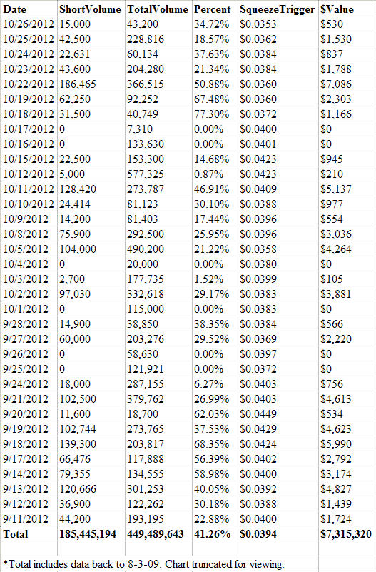 - Short Squeeze Expected When Stock Closes Above $.039 SqueezeTrigger