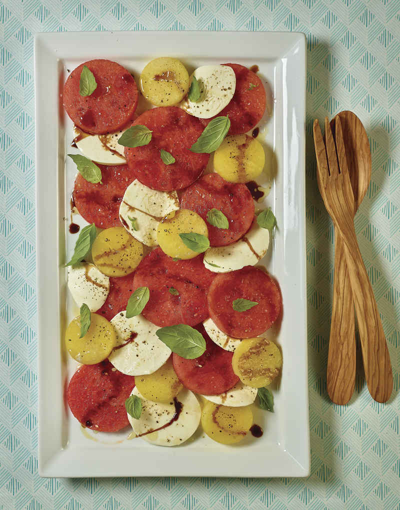 | Watermelon Caprese Salad with Balsamic Vinegar Reduction | |||