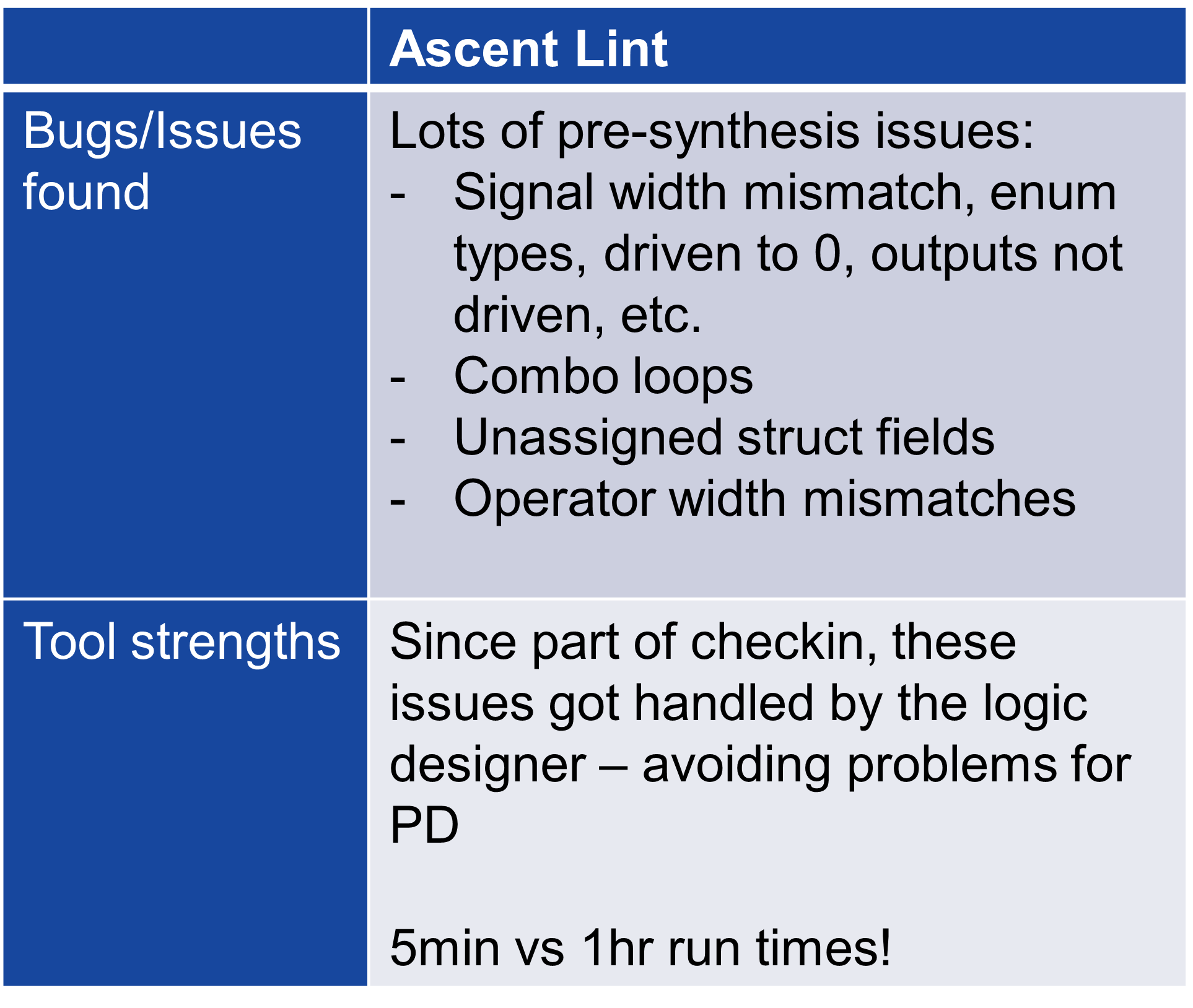 - Ascent Lint is the industry’s fastest RTL linter and rule checker for full-chip SoC analysis. Designed from the bottom-up to deliver the highest performance, capacity and low-noise reporting, it is the best-in-class HDL linter available today with a comprehensive set of syntax and semantic checks.