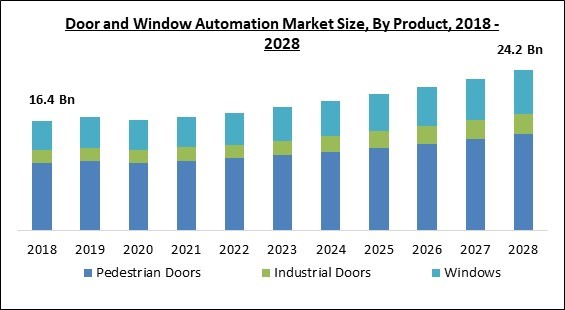 The Global Door and Window Automation Market size is expected to reach $24.2 billion by 2028, rising at a market growth of 5.4% CAGR during the forecast period.