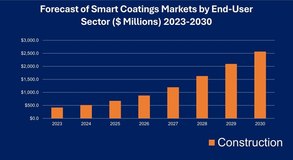 The report sizes and forecasts the use of smart coatings in construction and building products markets and provides analysis of the drivers for them from both the coatings and med sector perspectives. It examines use cases for the coatings currently, how they are supporting key initiatives such as sustainability, environmental, efficiency, regulatory, improved service delivery and others related to the respective industries' usage.