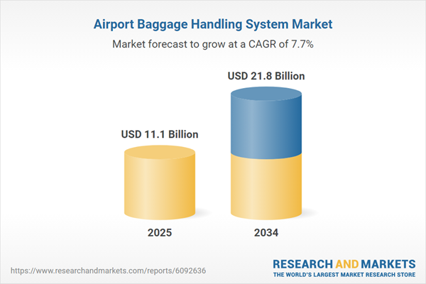 The global airport baggage handling system market, valued at USD 11.1 billion in 2025, is poised for significant growth with an expected CAGR of 7.7%, reaching USD 21.8 billion by 2034