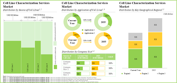 • Market Sizing and Opportunity Analysis: The report features an in-depth analysis of the global cell line characterization and cell line development market, focusing on key market segments, including source of cell line / expression system, application of cell line, company size and key geographical regions.