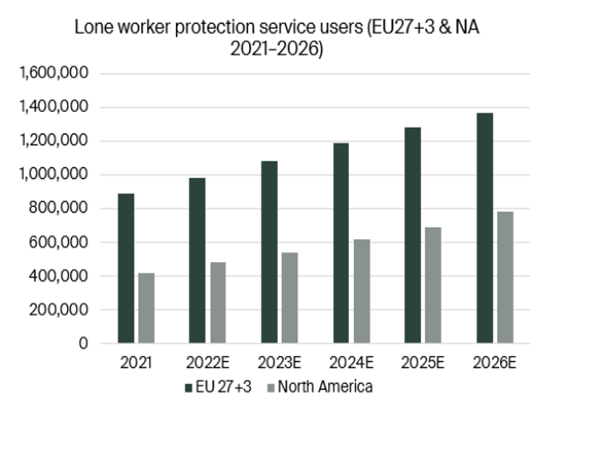 - Lone worker protection service users(EU27 +3 & NA 2021-2026)