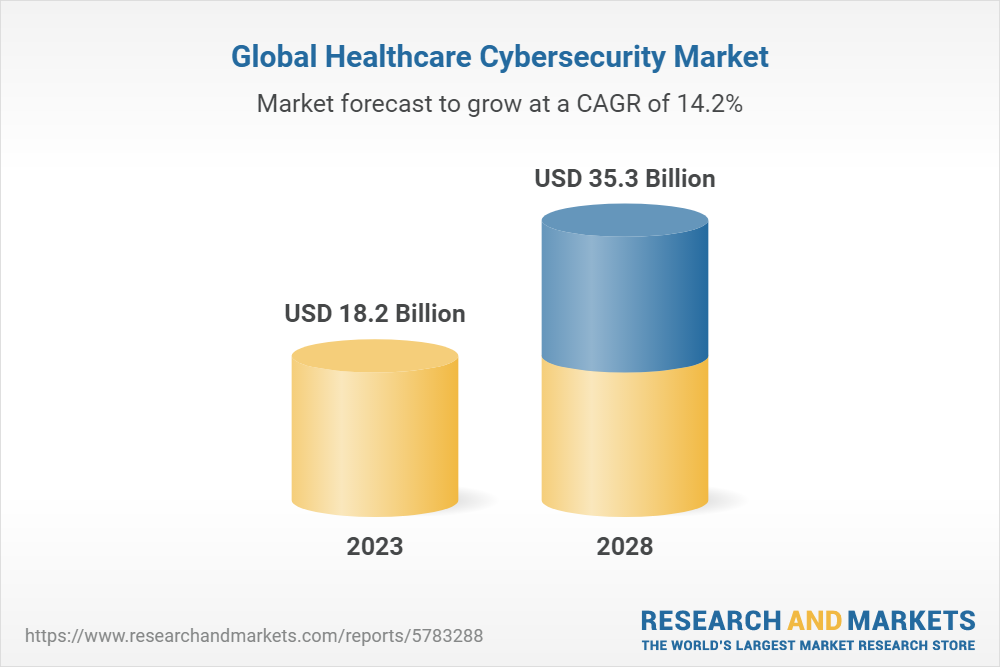 The global healthcare cybersecurity market size is projected to grow from USD 18.2 billion in 2023 to USD 35.3 billion by 2028, at a Compound Annual Growth Rate (CAGR) of 14.2%