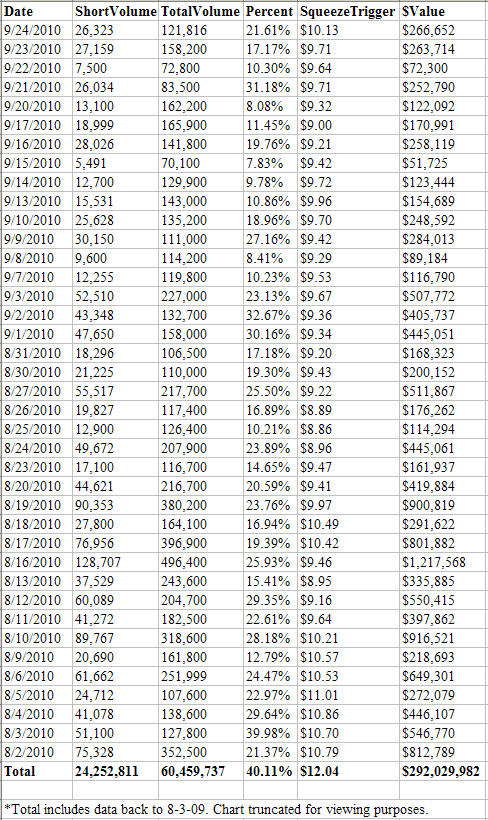 - Approximately 24.25 Million Shares Have Been Shorted Since August 2009