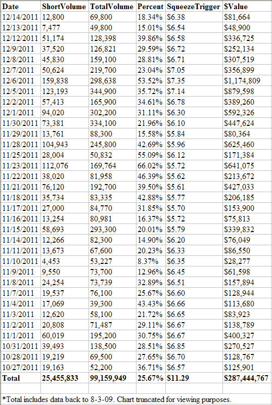- Approximately 25.45 Million Total Shares Shorted Since August 2009