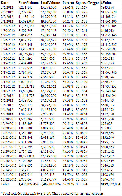 SqueezeTrigger -- 27 billion cell database tracks EVERY short sale (not just total short interest) in all US stocks and calculates volume weighted price that a short squeeze will begin in each stock.