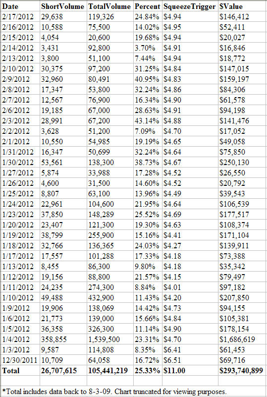 - Approximately 26.7 Million Total Shares Shorted Since August 2009