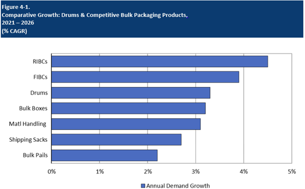 - Plastic drums are projected to retain their market presence, in part due to expanded use of refurbishment and reconditioning services.