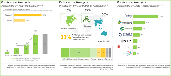 - Publication Analysis: An insightful analysis of the overall publications reported in this domain, based on various parameters, such as year of publication, type of publication and geography.