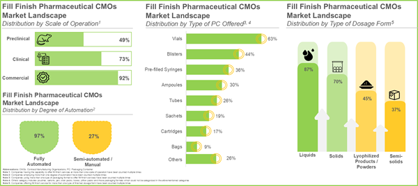 - Vials (63%) have emerged as the most adopted primary packaging container format; close to 85% of the players have the required capabilities to fill finish liquid formulations as the finished dosage form.