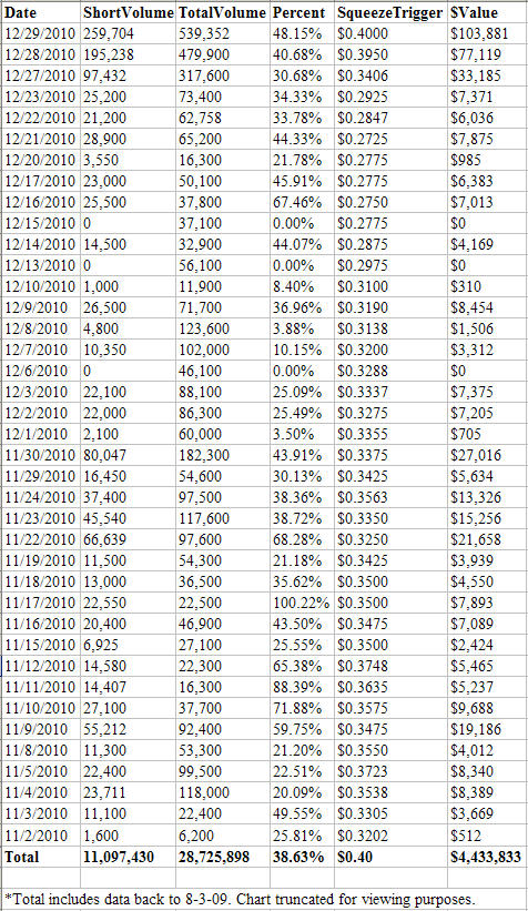 SqueezeTrigger -- 27 billion cell database tracks EVERY short sale (not just total short interest) in all US stocks and calculates volume weighted price that a short squeeze will begin in each stock.