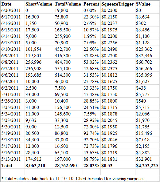 SqueezeTrigger -- 32 billion cell database tracks EVERY short sale (not just total short interest) in all U.S. stocks and calculates volume weighted price that a short squeeze will begin in each stock.