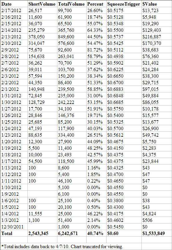 - Approximately 2.54 Million Shares Shorted Since April 2010