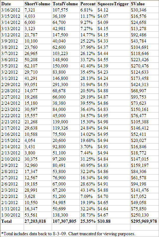 SqueezeTrigger - 31 billion cell database tracks EVERY short sale (not just total short interest) in all US stocks and calculates volume-weighted price that a short squeeze will begin in each stock.