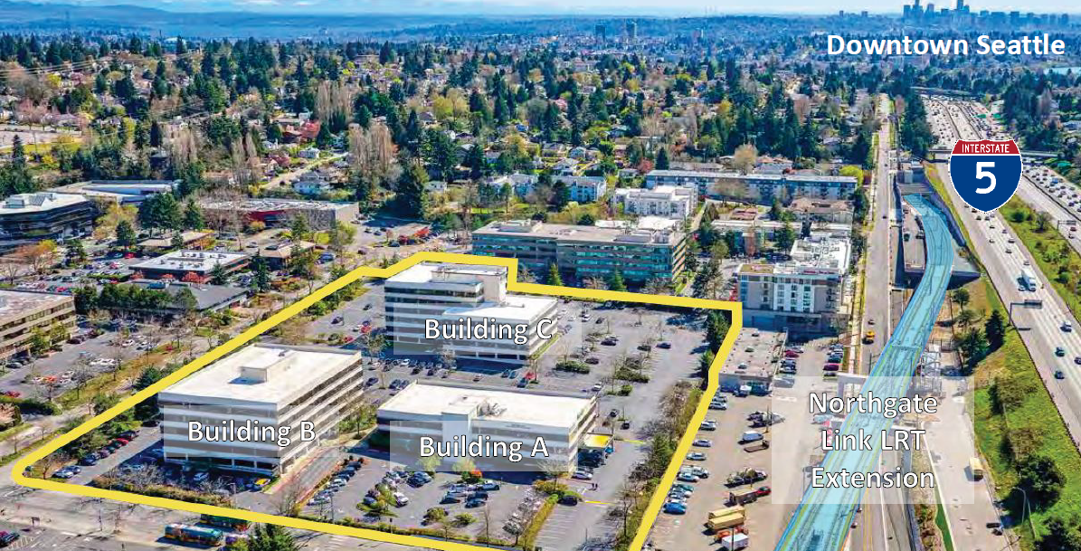 “Northgate Executive Center is an unparalleled, maturing urban location with immediate access to rapid transit, numerous amenities, and the opportunity for future re-development with the addition of significant multifamily rental product.” Schaeffers adds, “The property is located within a rapidly changing submarket that includes Northgate Mall undergoing a major renovation to accommodate the Seattle Kraken practice facility.”