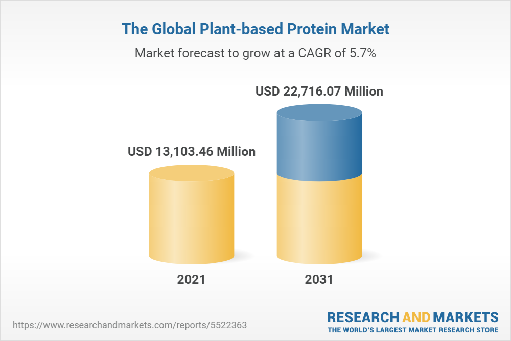 Dublin, Feb. 10, 2022 (GLOBE NEWSWIRE) -- The "Plant-based Protein Market - Global Industry Analysis, Size, Share, Growth, Trends, and Forecast, 2021-2031" report has been added to ResearchAndMarkets.com's offering.