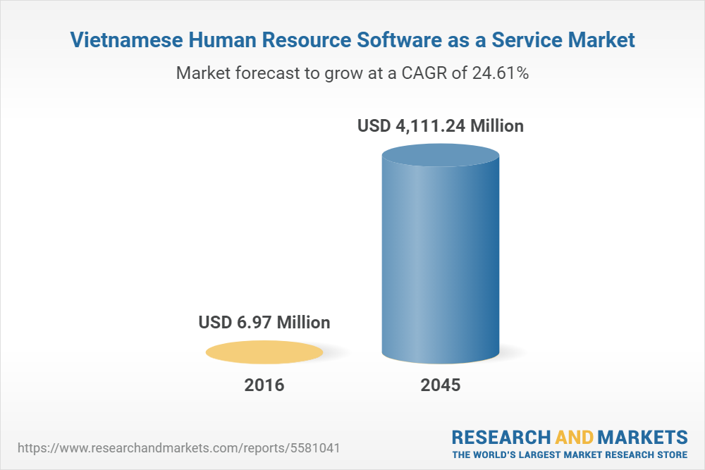 Dublin, May 30, 2022 (GLOBE NEWSWIRE) -- The "Vietnam Human Resource Software as a Service By Business Application (Attendance Management System, Leave Management, Others), By Type, By Organization Size, By Deployment, By End User, By Region, By Provinces, Competition, Forecast & Opportunities, 2016-2045" report has been added to ResearchAndMarkets.com's offering.
