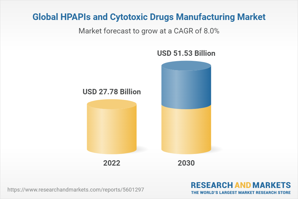 Dublin, June 15, 2022 (GLOBE NEWSWIRE) -- The "HPAPIs and Cytotoxic Drugs Manufacturing Market, by Drug Origin, by Manufacturing Location, by Drug Type, by Type of Pharmacological Molecule, by Application, and by Region - Size, Share, Outlook, and Opportunity Analysis, 2022 - 2030" report has been added to ResearchAndMarkets.com's offering.