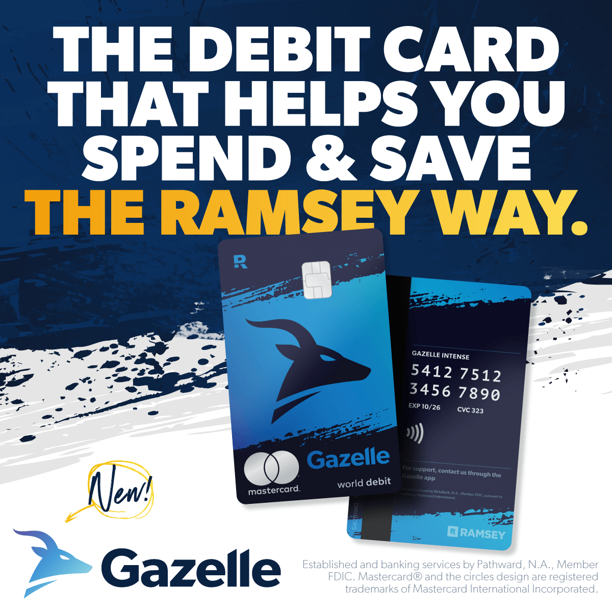 Ramsey continues to build out its digital products and grow in the consumer FinTech market. Exciting new features will be added to Gazelle over the coming months, including Apple Pay®, joint accounts, digital envelopes, and deeper integrations with other Ramsey products. To learn more about Gazelle, go to www.ramseysolutions.com/gazelle.