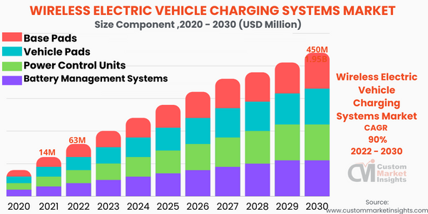 Browse the full “Wireless Electric Vehicle Charging Systems Market Size, Trends and Insights By Power Supply (Less than 11 kW, More than 50 kW, 11 kW to 50 kW), By Type (Dynamic, Static), By Component (Base Pads, Vehicle Pads, Power Control Units, Battery Management Systems), By Technology (Capacitive Wireless EV Charging Systems, Permanent Magnet Gear Wireless EV Charging Systems, Inductive Wireless EV Charging Systems, Resonant Inductive Wireless EV Charging Systems), By Propulsion (BEV, PHEV), By Application (Commercial, Residential), and By Region - Global Industry Overview, Statistical Data, Competitive Analysis, Share, Outlook, and Forecast 2022–2030” Report at https://www.custommarketinsights.com/report/wireless-electric-vehicle-charging-market/