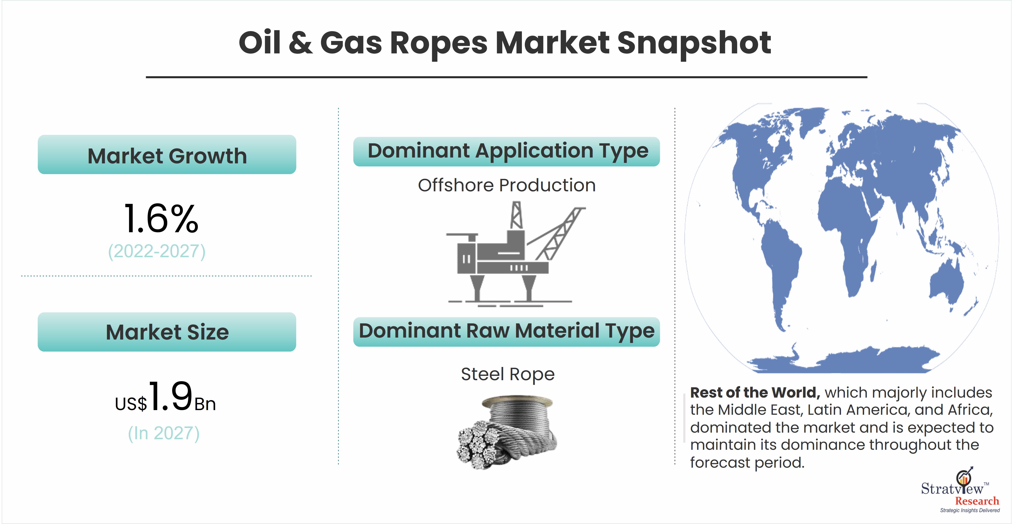 Stratview Research estimates that the oil & gas ropes market is likely to grow at a modest CAGR of 1.6%, during the forecast period, to reach a value of US$ 1.9 Billion in 2027.