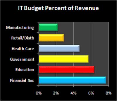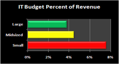 The size of enterprise impacts the cost of IT as the percentage of revenue is greatest in small enterprise (less than $100 million in revenue) and lest in large enterprises, those with revenues over $1 billion. Also infrastructure and budget vary by industry.