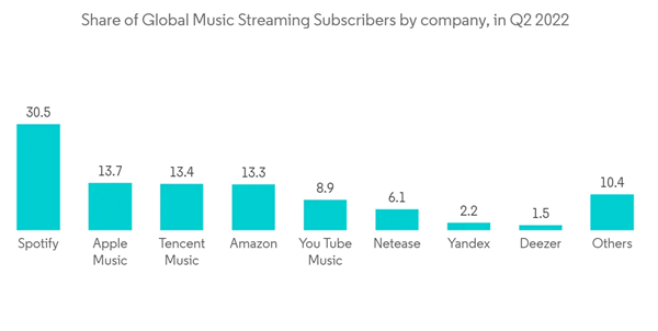 Cloud Music Services Market Share Of Global Music Streaming Subscribers By Company In Q2 2022