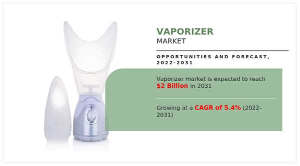 The global vaporizer market size was valued at $1.16 Billion in 2021 and is projected to reach $1.97 Billion by 2031, registering a CAGR of 5.4% from 2022 to 2031.
