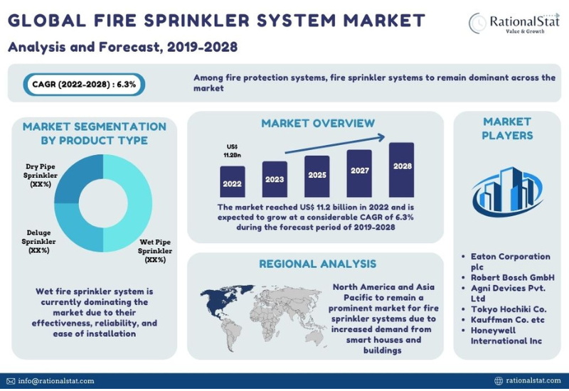 Wilmington, Delaware, Aug. 14, 2023 (GLOBE NEWSWIRE) -- The report by RationalStat titled “Global Fire Sprinkler System Market Analysis and Forecast, 2019-2028” assesses the regional market based on basis of product, response time, hazard, technology, application, and region. A detailed market analysis report provides an overall historical and future market size in terms of Market Value (US$ Million) and Market Volume (‘000 units) with a comprehensive market trend analysis (year-on-year growth).