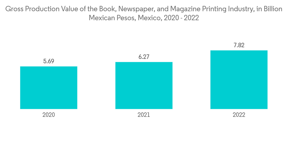 Mexico significantly uses printing on packaging products, particularly in the food and beverage industry, followed by the pharmaceutical and personal care sectors. According to the National Institute of Statistics and Geography (INEGI), the Mexico market is witnessing a growing trend in the sale value of soft and nonalcoholic beverages.