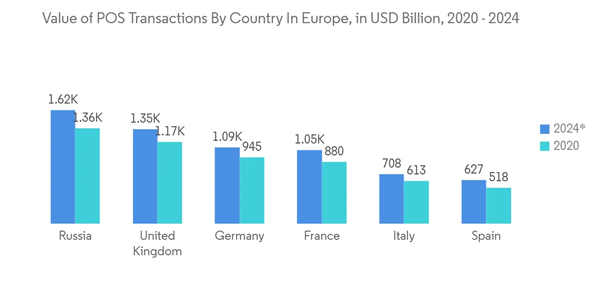 However, security remains a challenge for the point-of-sales market's growth due to the usage of critical information. POS terminals are connected to the network and the internet, making them vulnerable to attacks for access manipulation as is the case with any other insecure machine. The way the terminal communicates with the rest of the network means attackers could access unencrypted card data, including Track2 and PIN information that can be used to steal and clone payment cards.