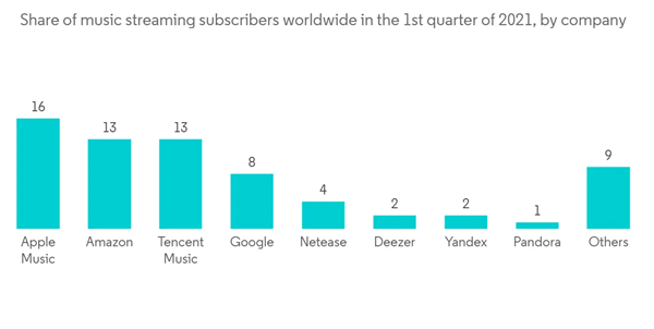 Throughout the forecast period, the adoption of intelligent devices is expected to surge, aligning with the increasing penetration of digital platforms. Music streaming services, encompassing platforms that offer music videos, audio streaming, and podcast subscriptions, are gaining immense popularity.