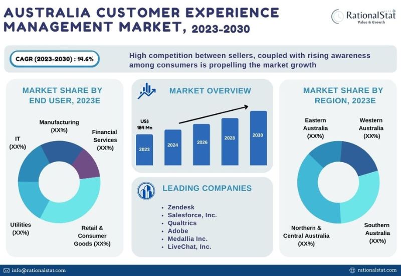 Wilmington, Delaware, Oct. 19, 2023 (GLOBE NEWSWIRE) -- Australia Customer Experience Management Market is valued at US$ 184 million in 2023 and is expected to grow at a significant CAGR of around 14.6% during the forecast period of 2023-2030, according to the published market report by RationalStat