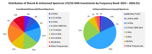 - Distribution of Shared & Unlicensed Spectrum LTE/5G RAN Investments by Frequency Band: 2023-2026 (%)