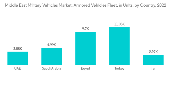 While countries like Saudi Arabia, Israel, and the United Arab Emirates operate modern military vehicles, several countries in the region possess Soviet-era vehicles that require modernization. Hence, these countries are investing in the procurement of new military vehicles.