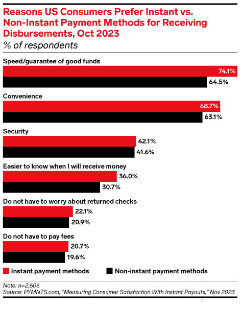 - Reasons US Consumers Prefer Instant vs. Non-Instant Payment Methods for Receiving Disbursements, Oct 2023 (% of respondents)