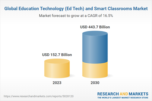 The global market for Education Technology (Ed Tech) and Smart Classrooms is estimated at US$152.7 Billion in 2023 and is projected to reach US$443.7 Billion by 2030, growing at a CAGR of 16.5% from 2023 to 2030. This comprehensive report provides an in-depth analysis of market trends, drivers, and forecasts, helping you make informed business decisions.