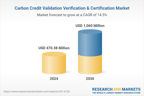 The Carbon Credit Validation Verification & Certification Market grew from USD 415.35 million in 2023 to USD 470.38 million in 2024. It is expected to continue growing at a CAGR of 14.45%, reaching USD 1.06 billion by 2030.