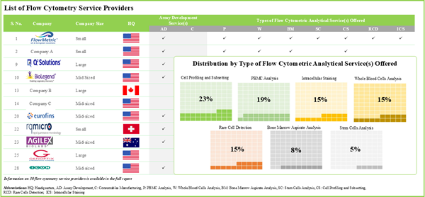- 30 companies claim to offer various types of flow cytometry services; majority of these offer analysis-based flow cytometric services.