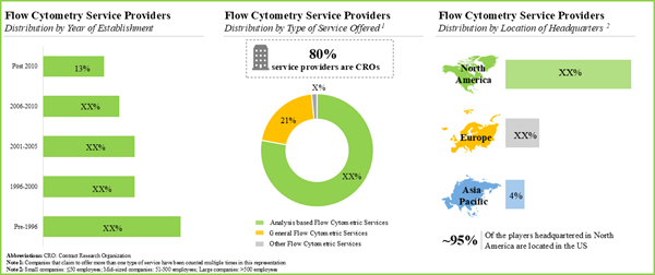 - The current market landscape features the presence of both well-established and new firms offering a wide range of flow cytometry services; a relatively large proportion of the players are based in North America.