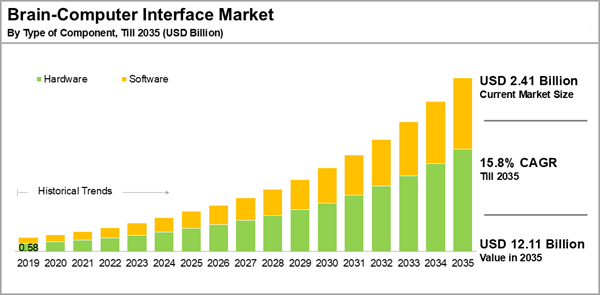 Furthermore, the collaboration of BCIs with artificial intelligence and robotics is leading to the development of robust systems that can interpret brain activity and control advanced prosthetic devices. As a result, with ongoing technological advancements and increasing investment interest, the global brain-computer interface market is expected to experience significant growth during this forecast period.