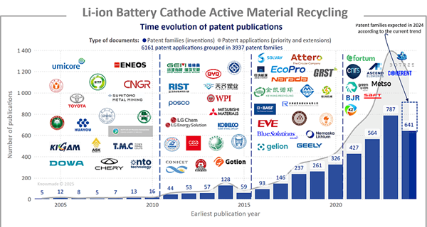 The growing interest in, and need for, a sustainable supply chain has driven innovators into an IP race in Li-ion battery CAM recycling.